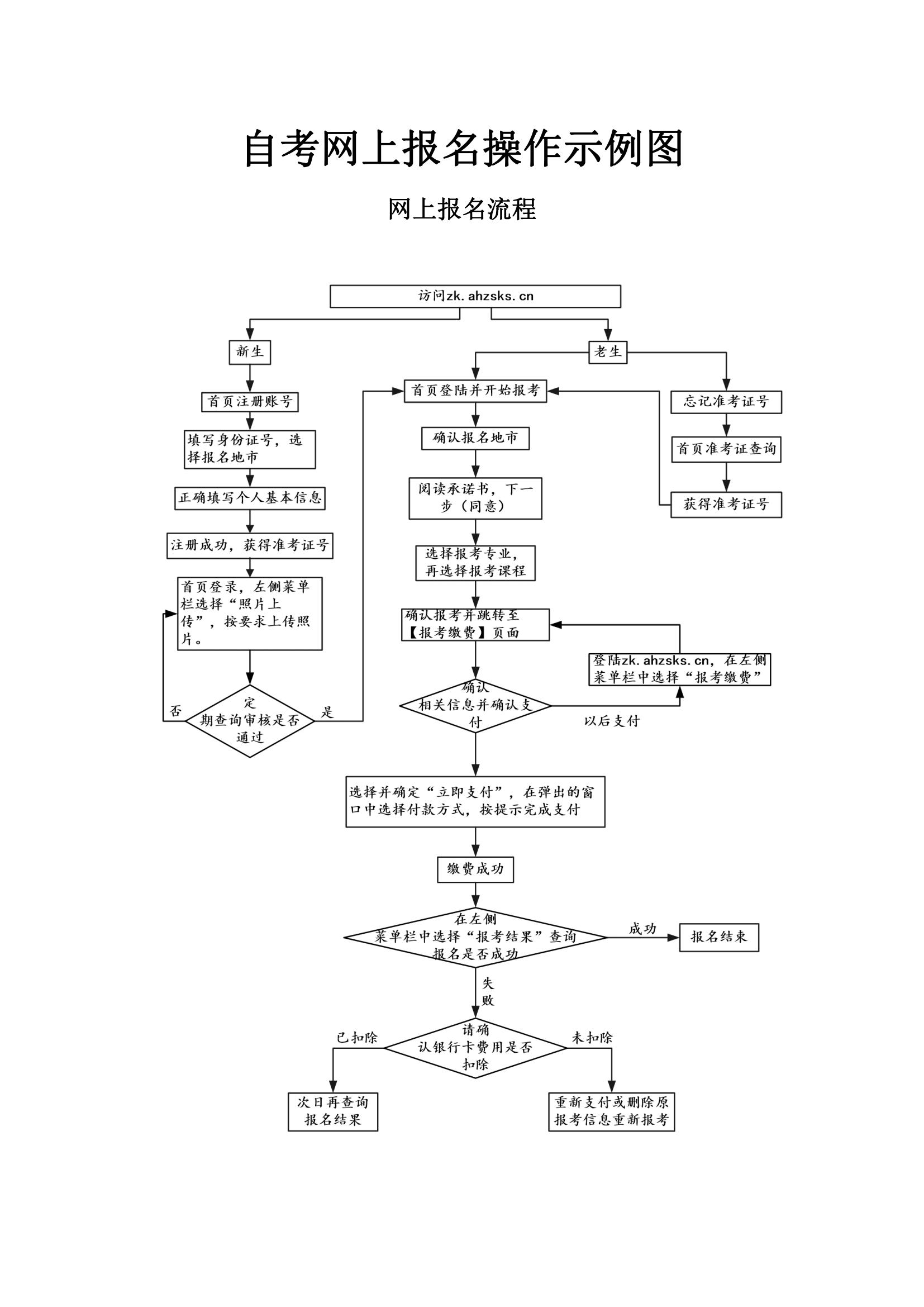 報名網址為http://zk.ahzsks.cn/。系統限定每位考生在整個報名期間只能報考一次(本次最多能報八門課程),考生如報考多個專業也必須一次性完成。報名采用網上繳費,繳費成功后,考生無法再進行補報、改報。報名網站不提供教材征訂服務,考生可根據我院公布的教材版本自行購買。