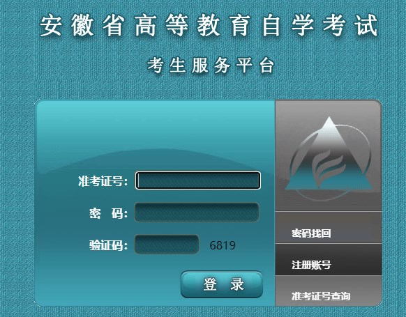 1、進入安徽省高等教育自學考試考生服務平臺(點擊咨詢網站入口>>),輸入準考證號、密碼、驗證碼登錄后;