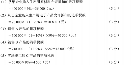 (2)計算從乙企業購入生產用電子產品允許抵扣的進項稅額;