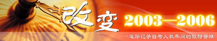 2004年8月,自考365有個名為“改變2003-2004”的人物寫真專題,她真實記錄了十幾位自考生,在他們人生中這一段特定時期的所思所感所為。因為見多了媒體上完美的人物形象,我們更有興趣看看普通人背后的那么多或心酸或曲折的故事。