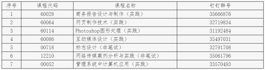 2. 考生需根據下表中公布的各門課程釘釘會議號,加入相應課程的考試預備通知群中。