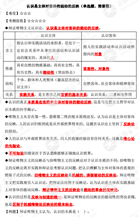 2023年10月自學(xué)考試備考正在進(jìn)行中,自考365網(wǎng)校為各位考生整理了2023年10月自考公共課《馬克思主義基本原理概論》的核心考點(diǎn)——認(rèn)識(shí)是主體對(duì)客體的能動(dòng)的反映,正在復(fù)習(xí)的同學(xué)快來查收!