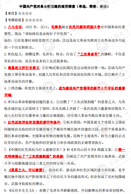 2023年10月自考《中國近現代史綱要》核心考點:中國共產黨對革命新道路的艱苦探索