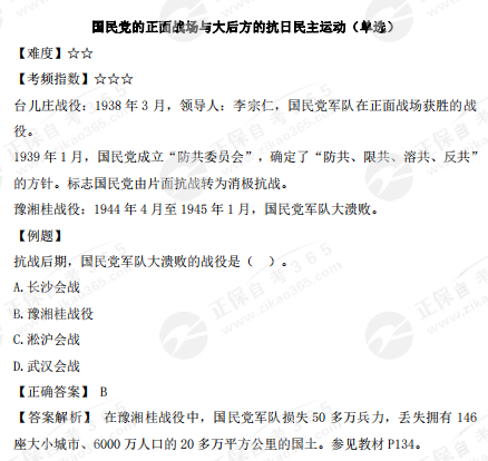 2023年10月自考《中國近現代史綱要》核心考點:國民黨的正面戰場與大后方的抗日民主運動