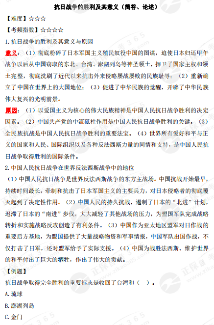 2023年10月自考《中國近現代史綱要》核心考點:抗日戰爭的勝利及其意義