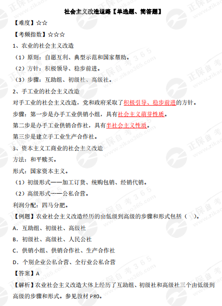2023年10月自考《毛澤東思想和中國特色社會主義理論體系概論》高頻考點:社會主義改造道路