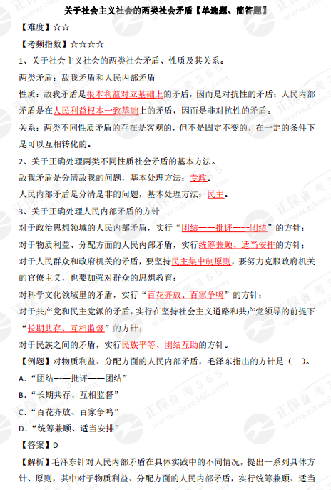 2023年10月自考《毛澤東思想和中國特色社會主義理論體系概論》高頻考點:關于社會主義社會的兩類社會矛盾
