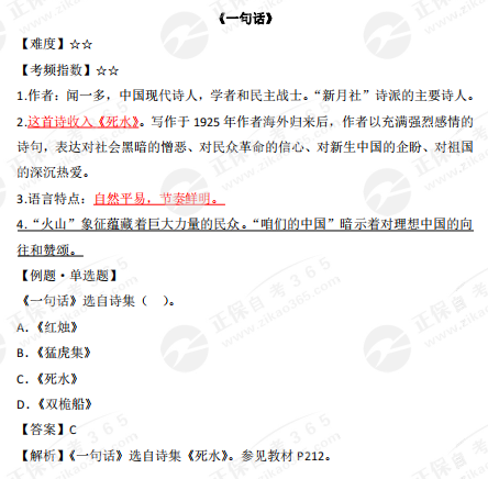 2023年10月自學考試備考正在進行中,自考365網校為各位考生整理了2023年10月自考公共課《大學語文》詩歌部分的高頻考點——《一句話》,正在復習的同學快來查收!