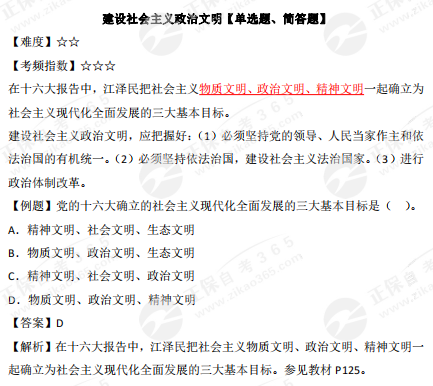 2023年10月自學考試備考正在進行中,自考365網校為各位考生整理了2023年10月自考公共課《毛澤東思想和中國特色社會主義理論體系概論》第六章“三個代表”重要思想的高頻考點——建設社會主義政治文明,正在復習的同學快來查收!