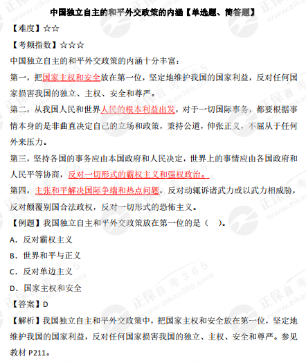 2023年10月自考《毛澤東思想和中國特色社會主義理論體系概論》高頻考點:中國獨立自主的和平外交政策的內涵