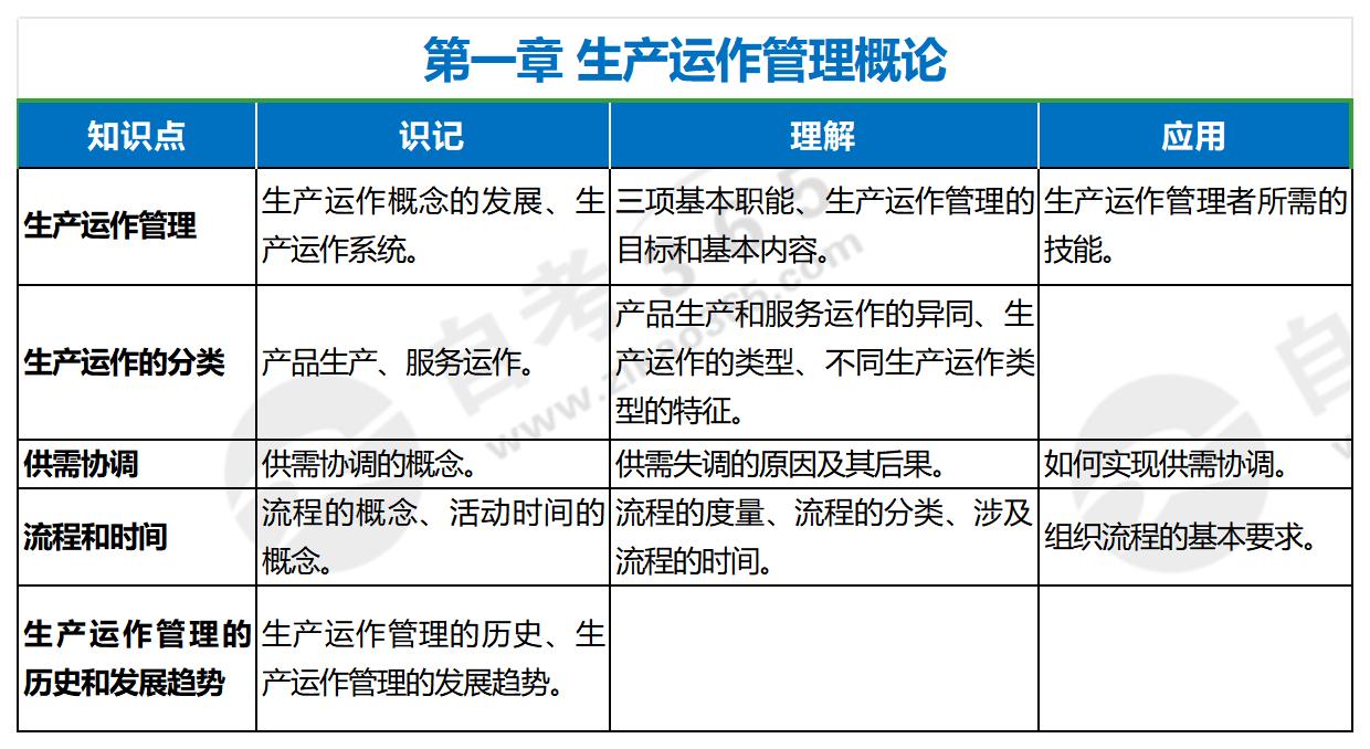 下面,我們一起來看看2024年運作管理(2022年版)考試大綱中,第一章有哪些知識點吧!