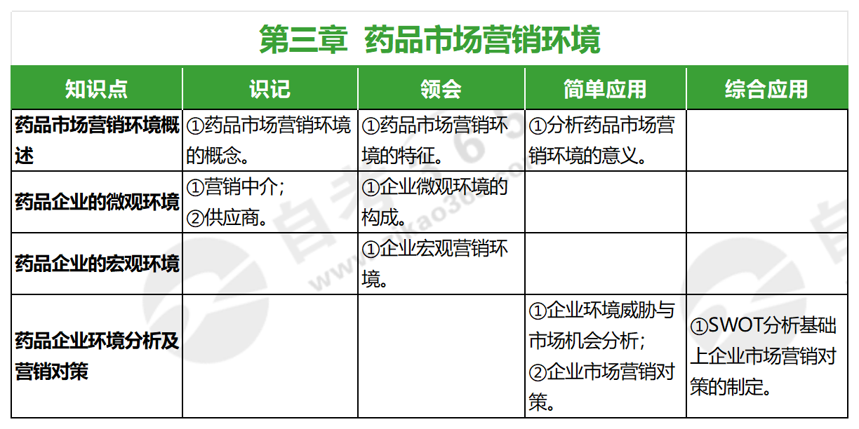 自考備考秘籍來了!自考365網校將2024版醫藥市場營銷學第三章考試大綱+教材融合,完美編織成知識圖譜,自動過濾非考核章節,助你把教材讀薄,精準狙擊考點,告別盲目啃書!同時用 "識記-領會-簡單應用-綜合應用" 標注考點深淺,輕松了解復習深度,提前預判題型風向,快來看看吧!