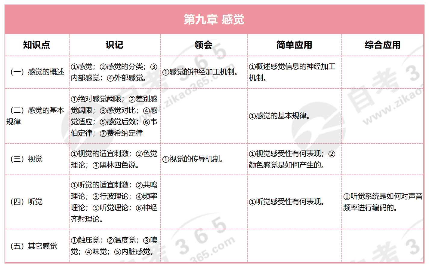 自考心理學導論(2015版)知識點框架:第九章 感覺