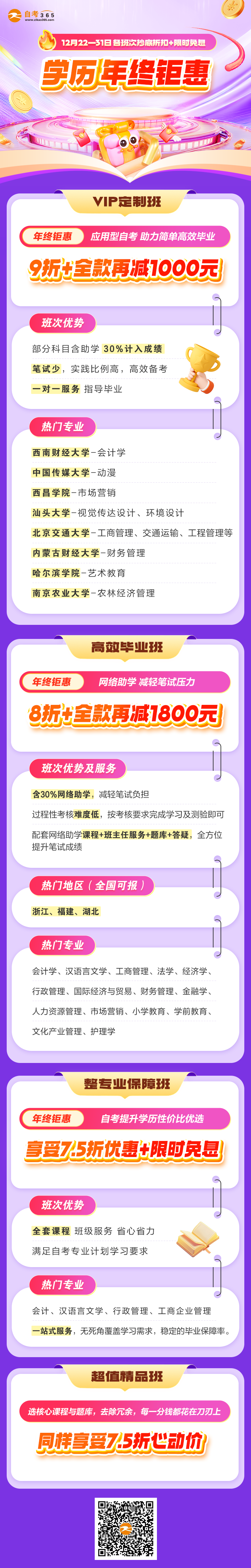 自考年終鉅惠 各班次抄底折扣+限時免息