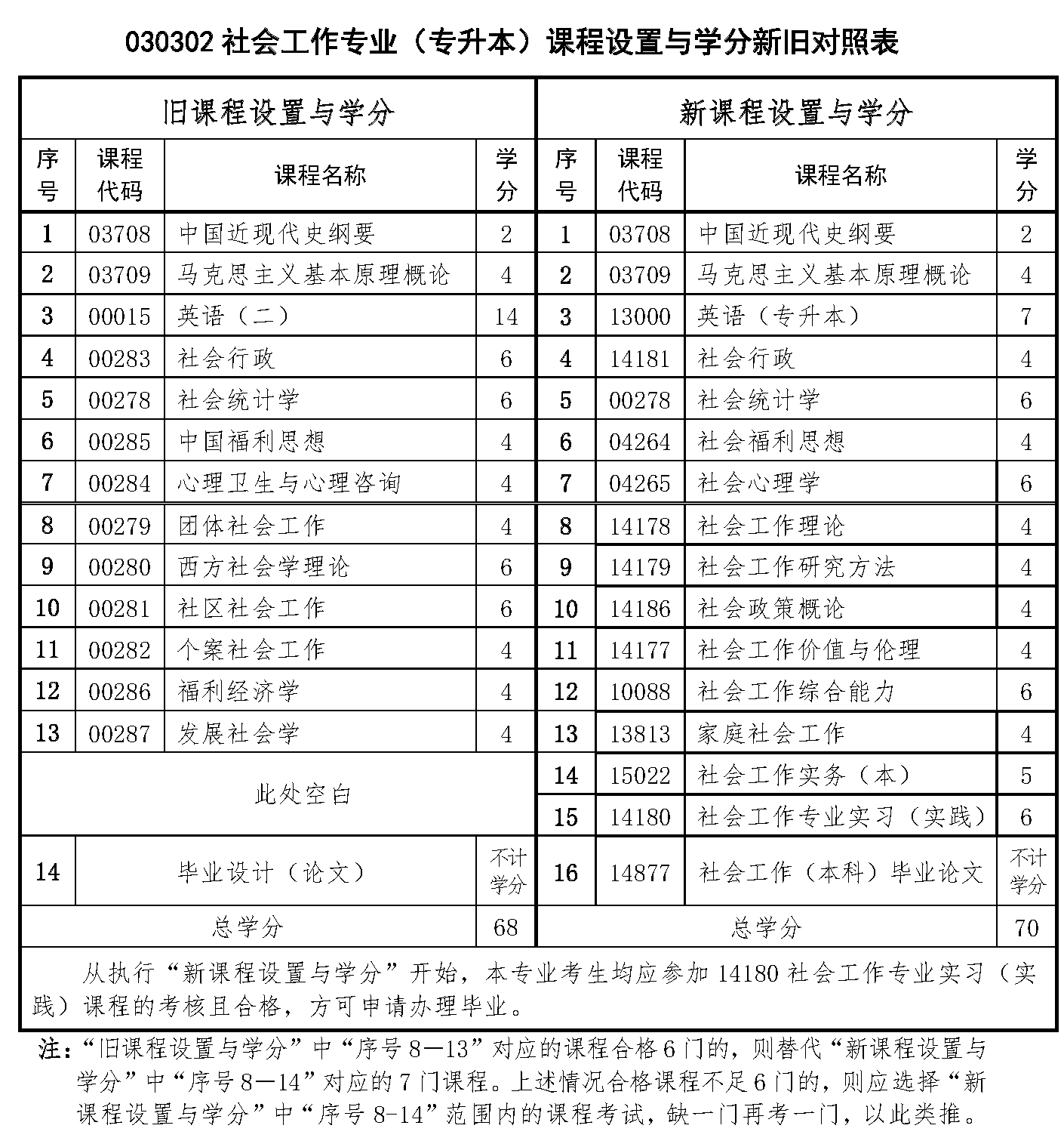 自2026年開始,重慶自考將啟用2024年版專業計劃,其中,重慶自考本科社會工作專業的課程設置與學分新舊對照表如下: