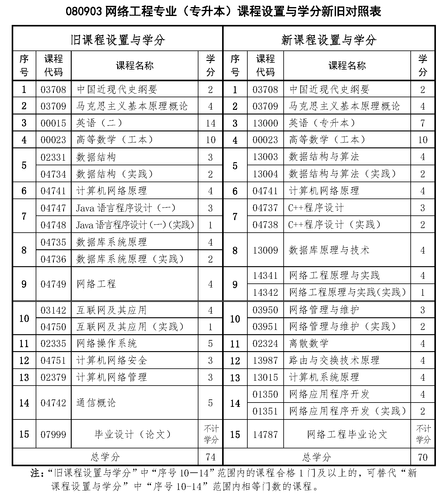 自2026年開始,重慶自考將啟用2024年版專業(yè)計劃,其中,重慶自考本科網(wǎng)絡(luò)工程專業(yè)的課程設(shè)置與學(xué)分新舊對照表如下: