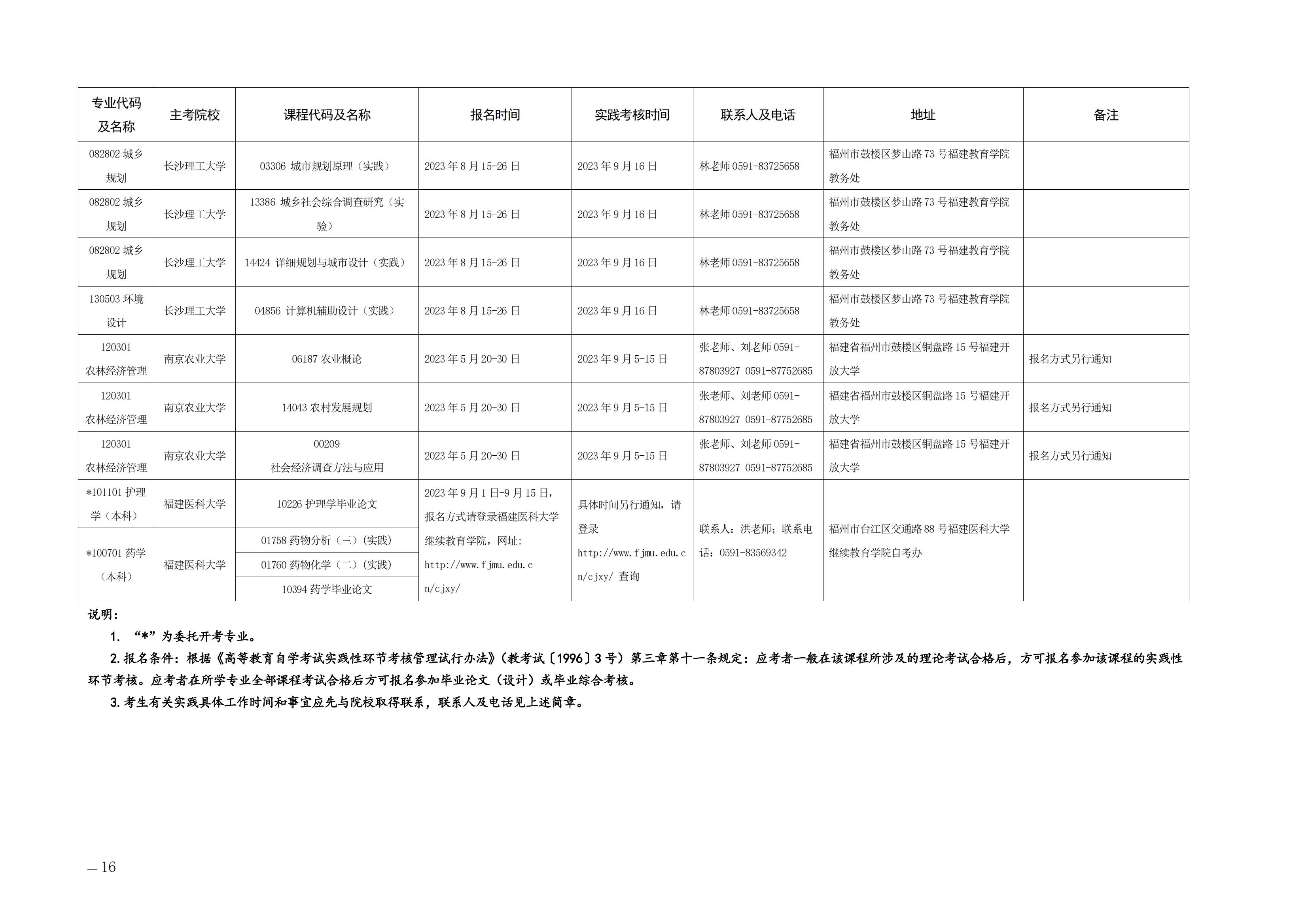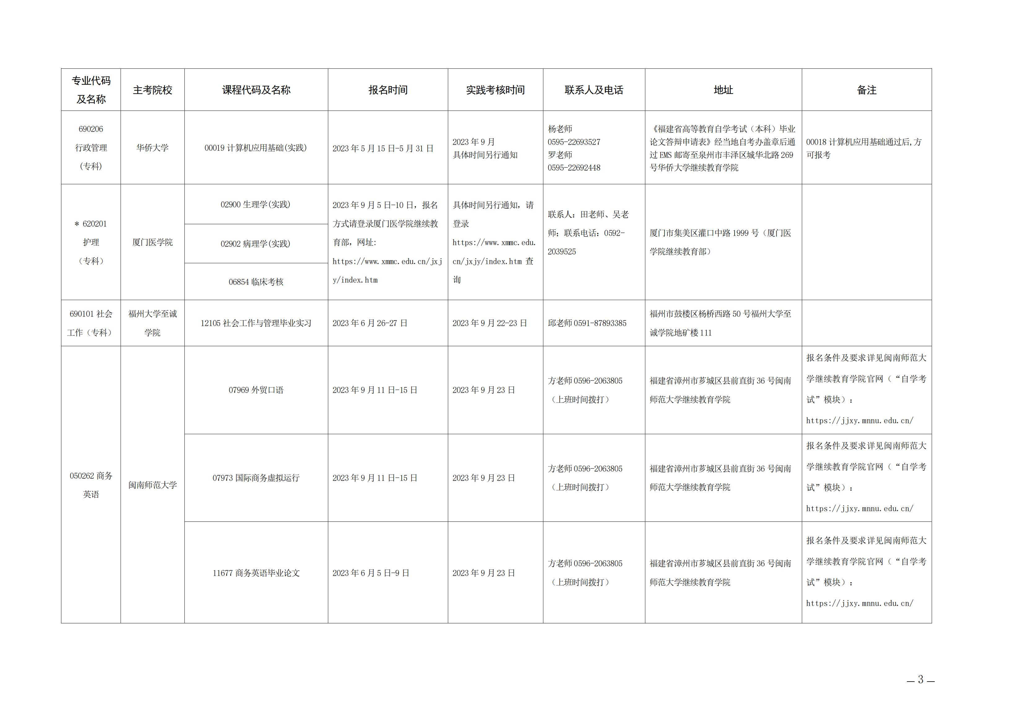 2023年下半年福建自考面向社會開考實(shí)踐性考核課程安排表