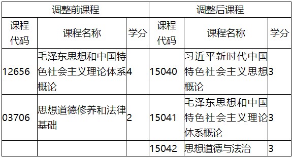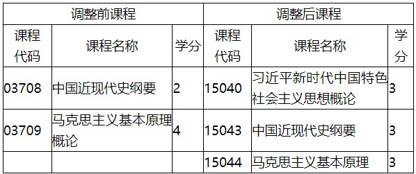 (二)原本科層次專業(yè)的2門思想政治理論課調(diào)整設(shè)置為3門。如表所示