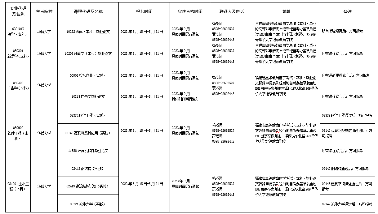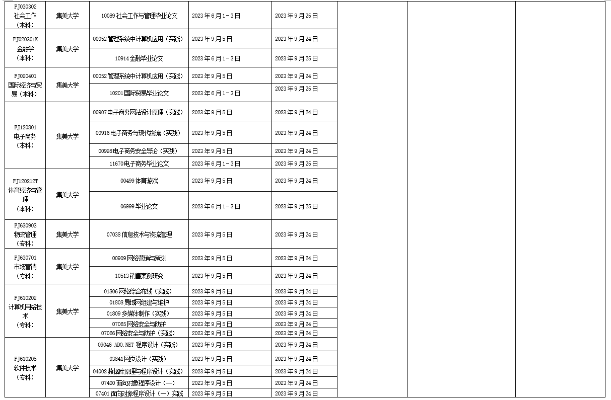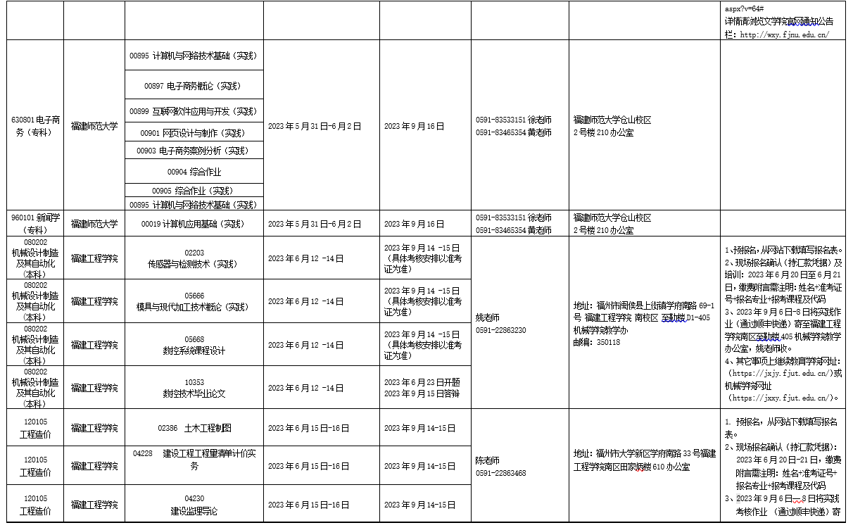 詳見附件:2023年下半年福建省高等教育自學考試面向社會開考實踐性考核課程安排表