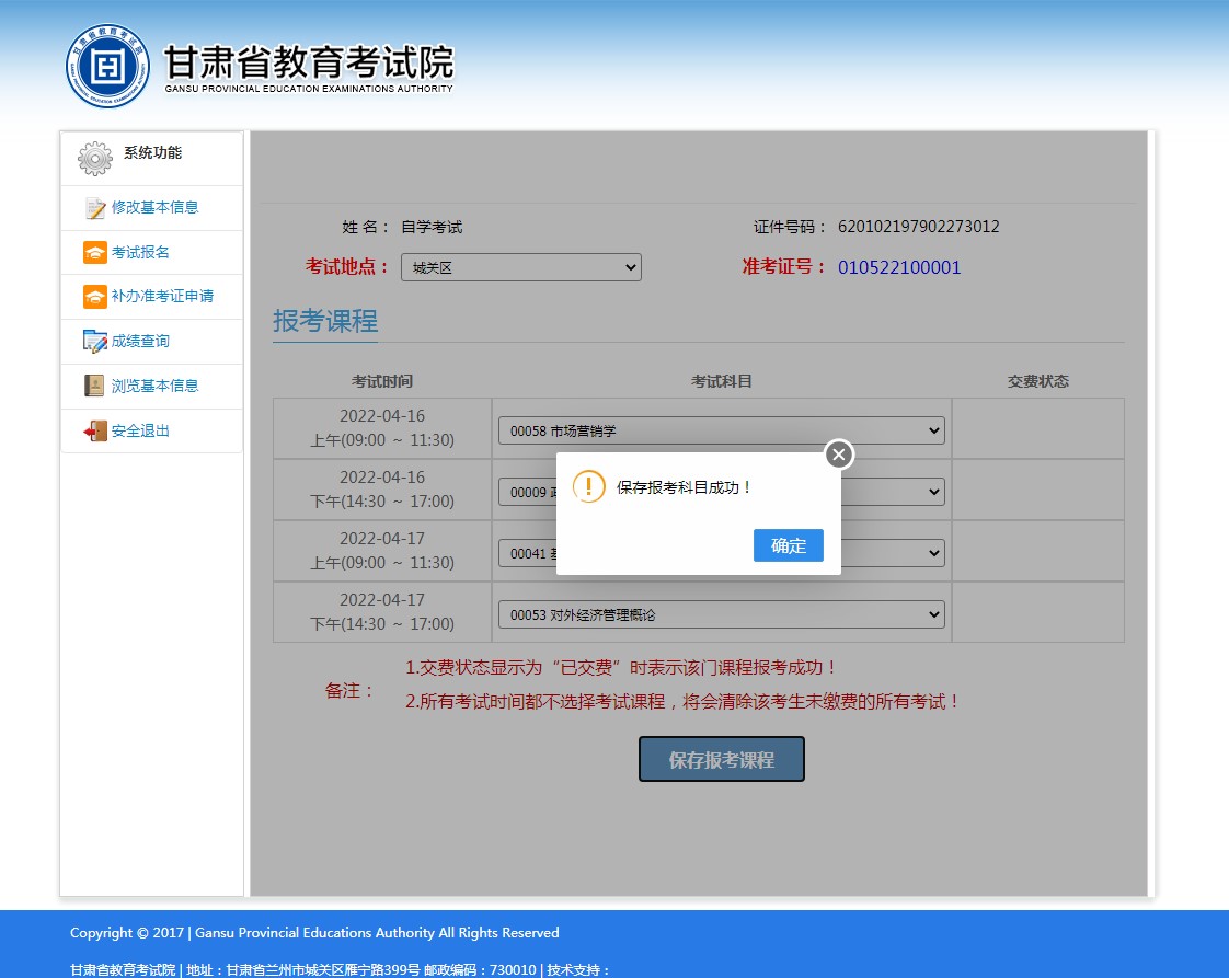 按照考試時(shí)間,下拉框顯示本次考試所有科目,選擇完成后,點(diǎn)擊“保存報(bào)考課程”。
