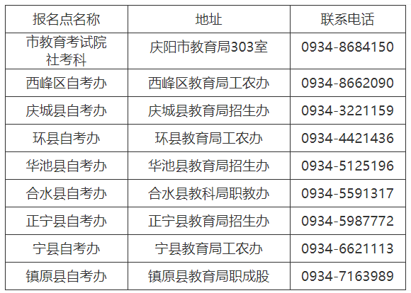 10.報名期間,考生若有疑問可撥打慶陽市教育考試院和各縣(區)報名地點聯系電話。應用型專業和“專接本”“二學歷”學制外考生可聯系所在學校咨詢有關問題。