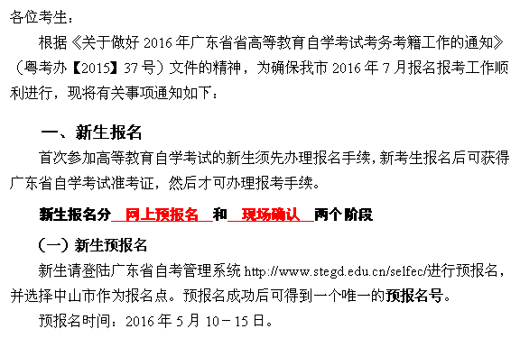 首頁 > 自考報名> 廣東自考報名 > 2016年7月中山自學考試報名時間安排