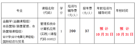 注意:培訓、考試時間預計是10月31日,如時間安排與國家規定節假日或國家統考時間沖突則作相應調整,請于10月26日登錄深大經濟學院自考網查看最新通知安排。