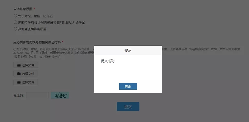 如實填寫問卷內容后,點擊提交,即可完成補考登記。