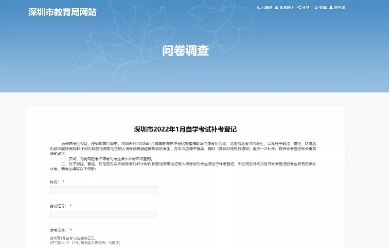 完成身份驗證后,再次打開鏈接http://szeb.sz.gov.cn/hdjlpt/yjzj/answer/16926,進行補考登記填寫。