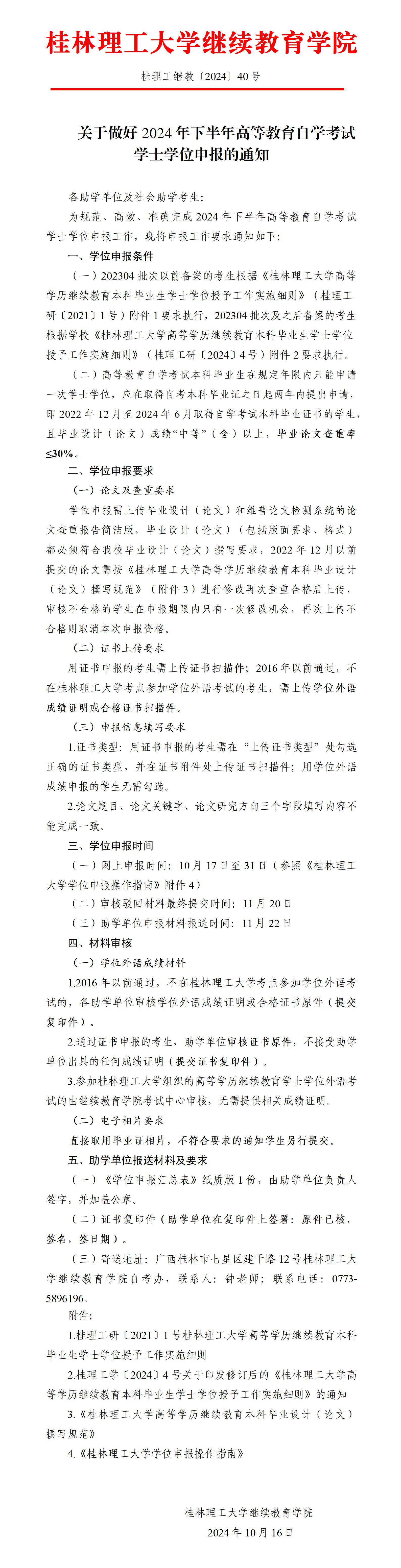附件2:桂理工學〔2024〕4 號關于印發修訂后的《桂林理工大學高等學歷繼續教育本科畢業生學士學位授予工作實施細則》的通知
