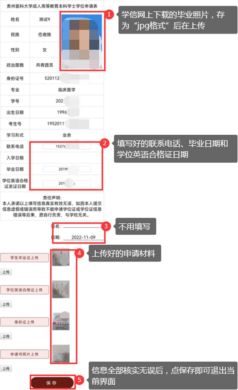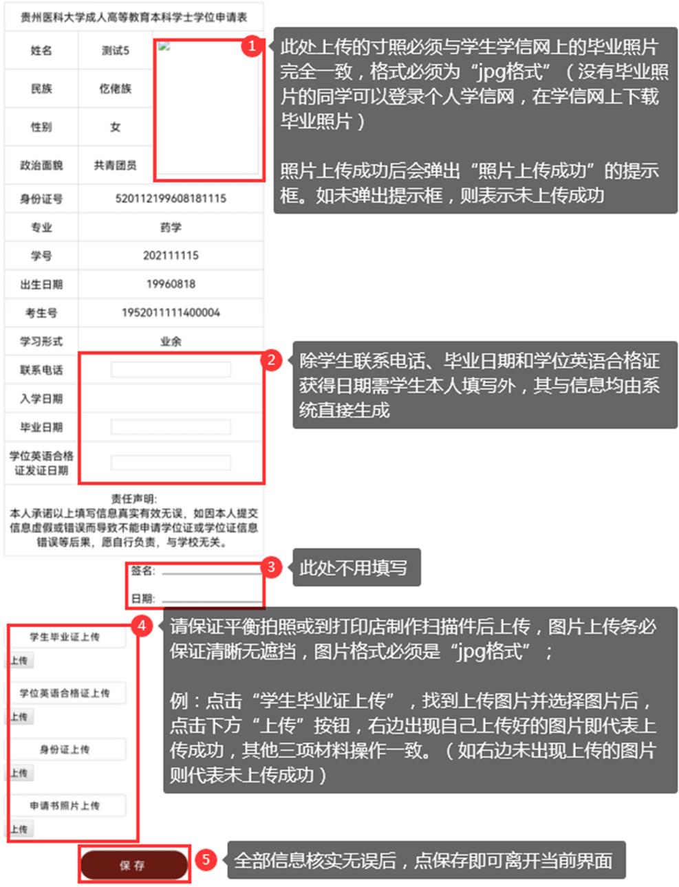 ⑤貴州醫科大學成人高等教育本科畢業生學士學位申請書(模板見后)