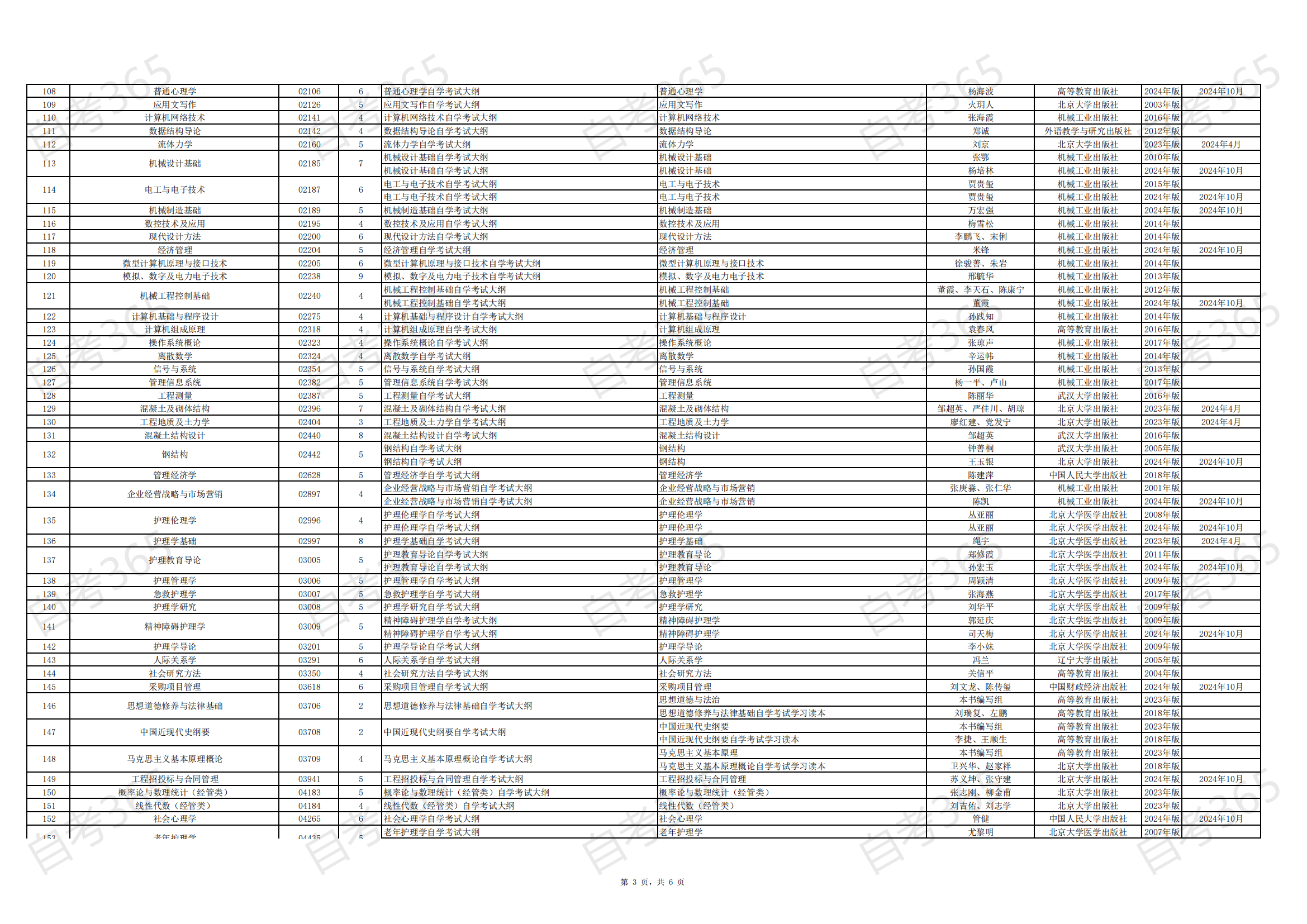 下載pdf:2024年高等教育自學考試全國統考課程使用的考試大綱、教材目錄