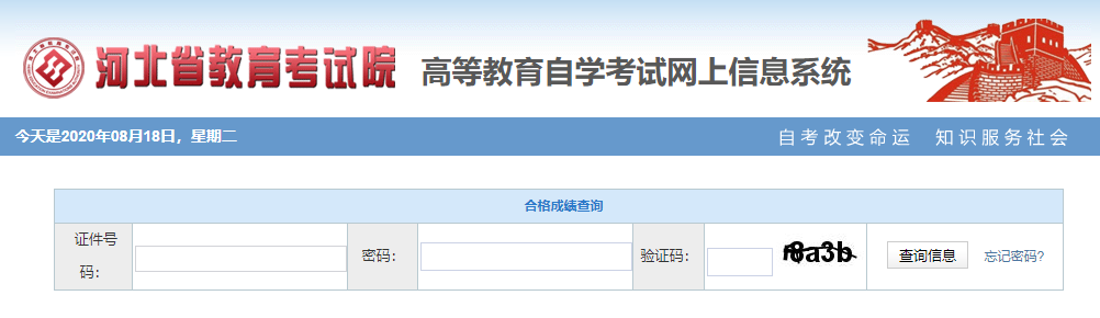 2、輸入個人證件號、系統登錄密碼及驗證碼,點擊“查詢信息”即可查詢河北省自考全部合格成績。