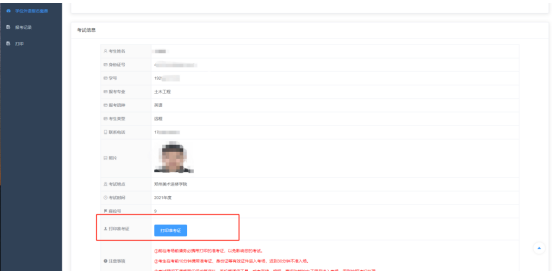 2、點(diǎn)擊“打印準(zhǔn)考證”