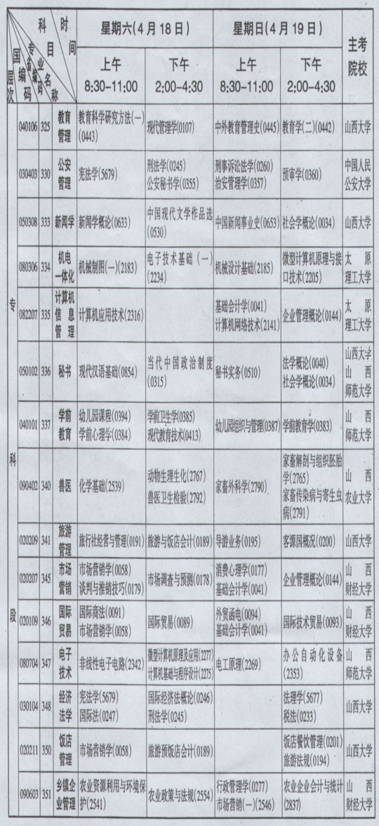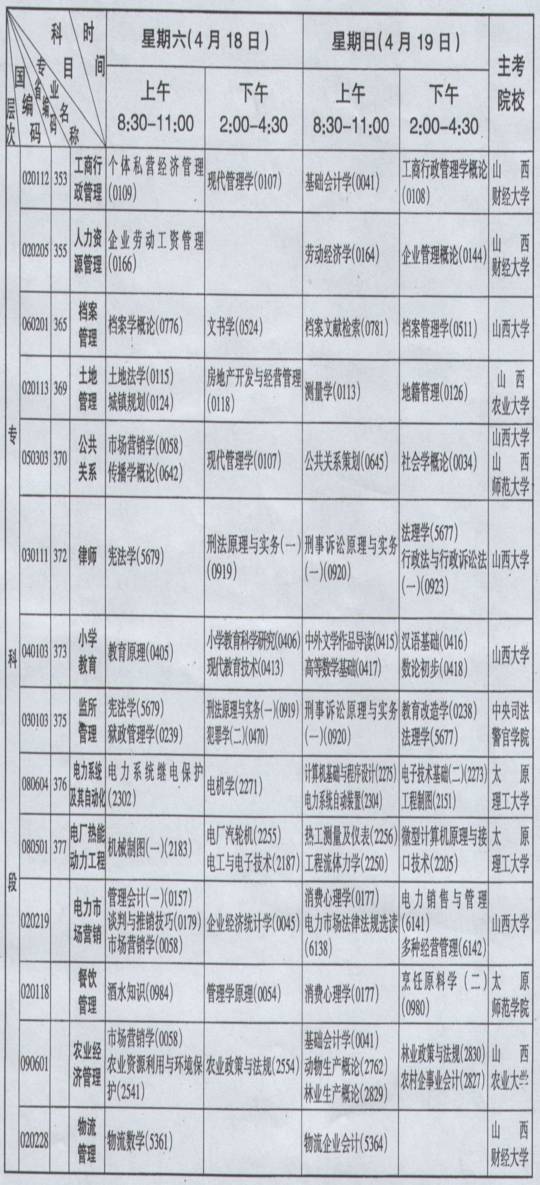 首頁 > 考試安排> 山西考試安排 > 山西省09年4月自考科目及時間安排表