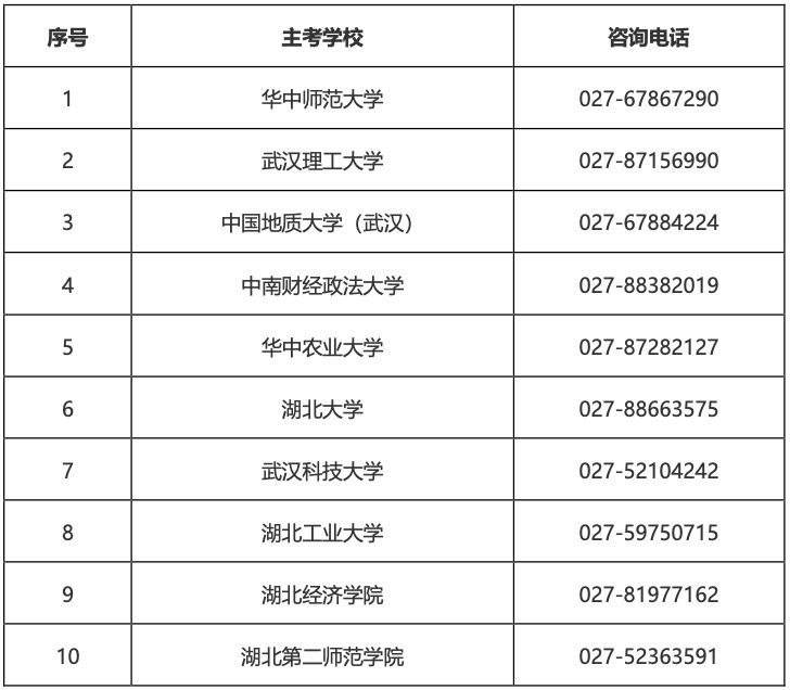 面向社會開考的主考學校及咨詢電話如下: