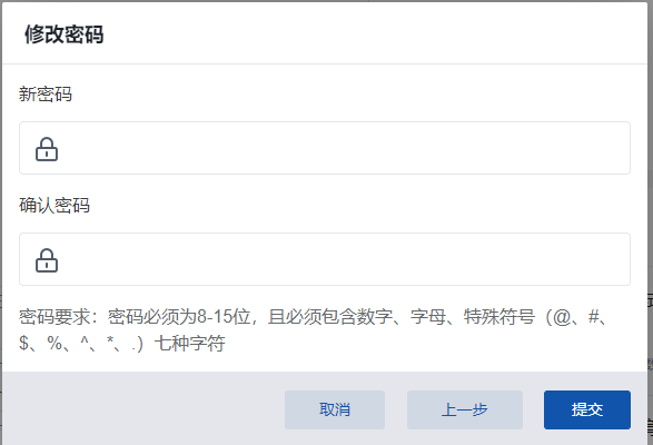 輸入新密碼、確認密碼,點擊“提交”按鈕,彈出如下提示窗口。