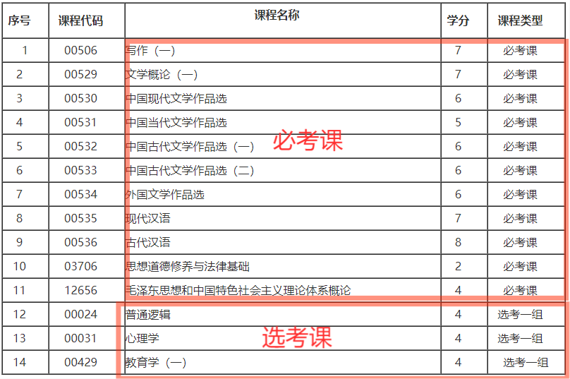 吉林自考漢語言文學專科需考過12門課程(如下圖所示),其中,包括11門必考課,1門選考課。(直通車→2021年10月吉林自考專業及主考院校一覽表)