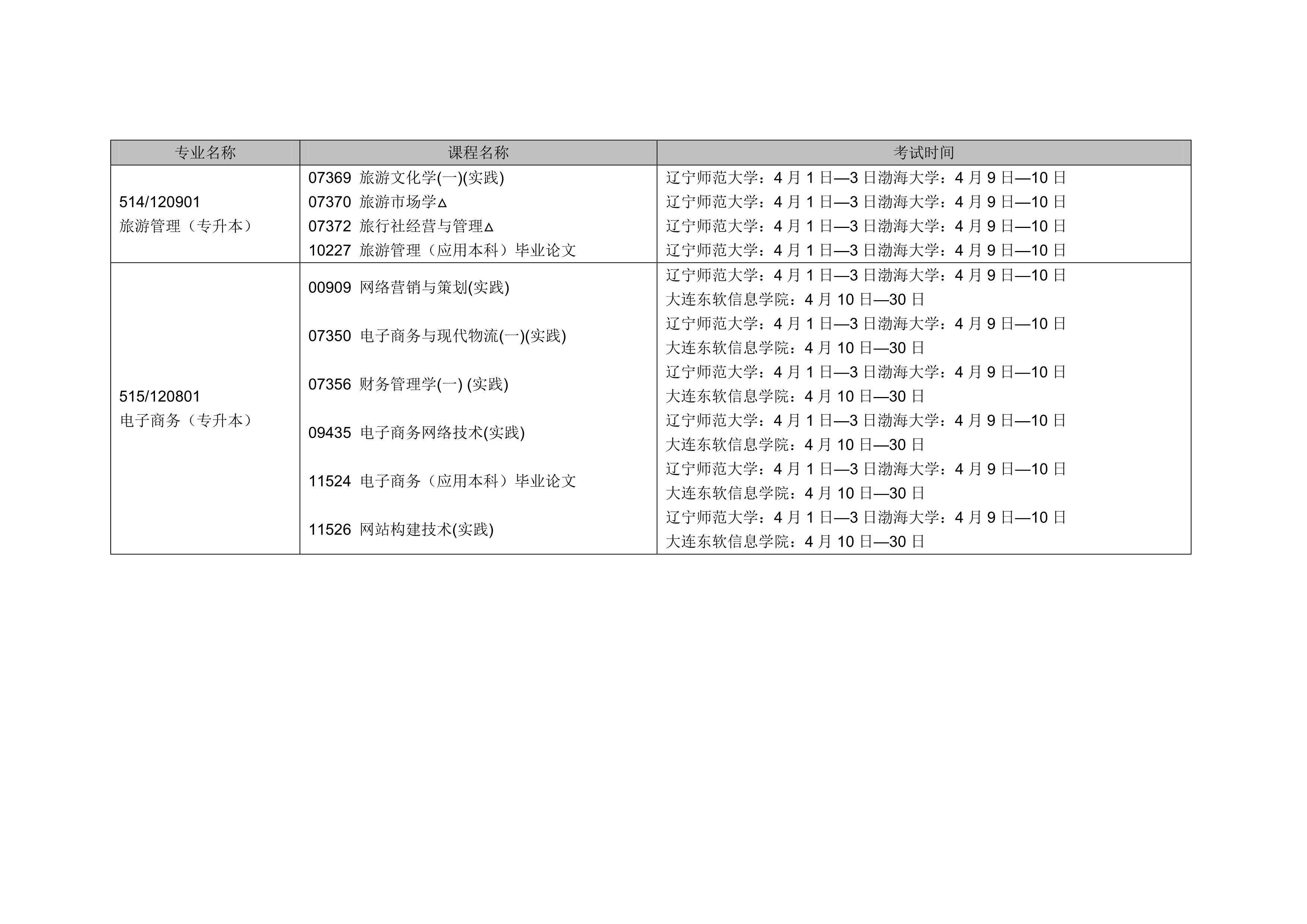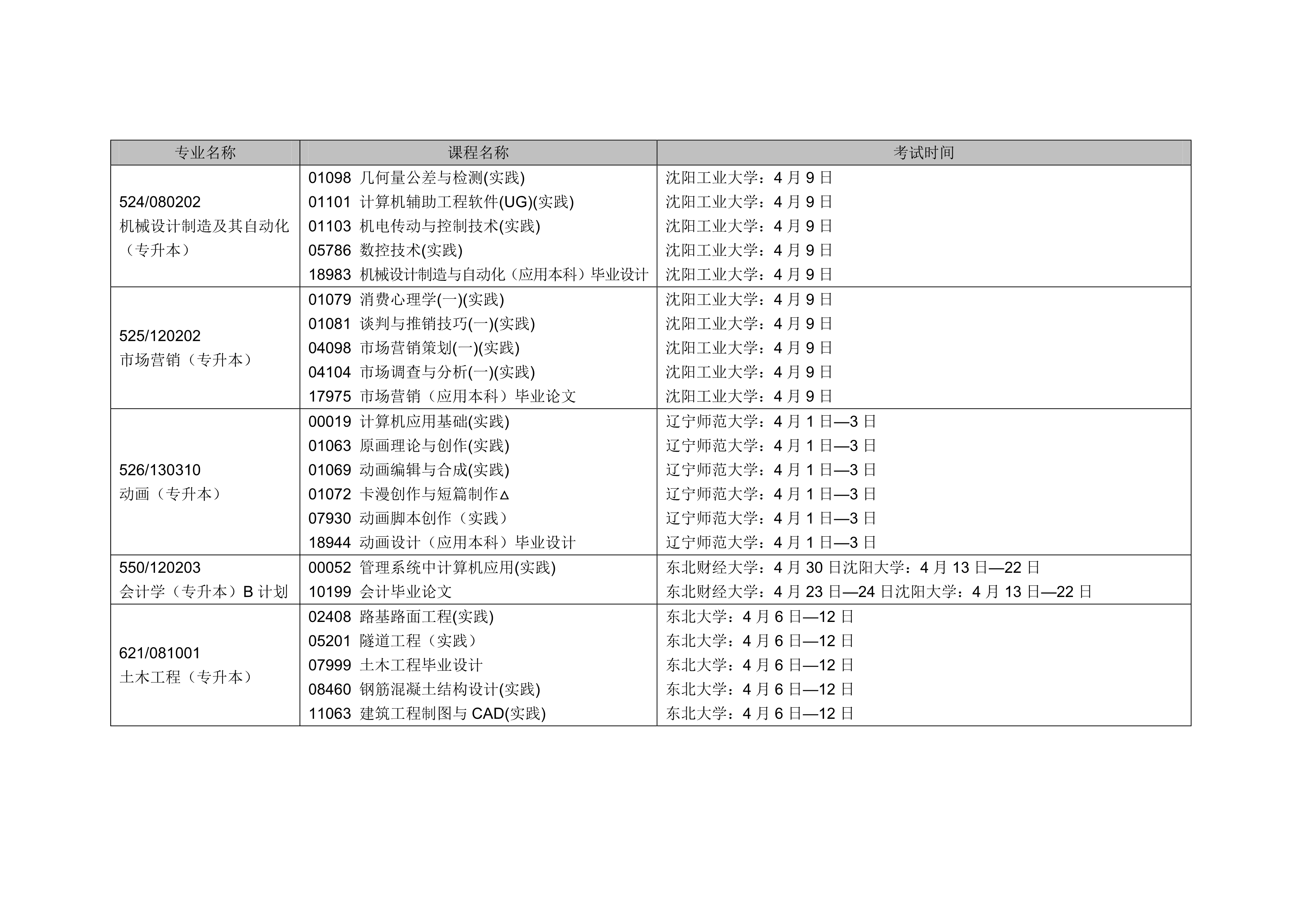 2022年上半年遼寧自考實踐環節考試課程安排表5