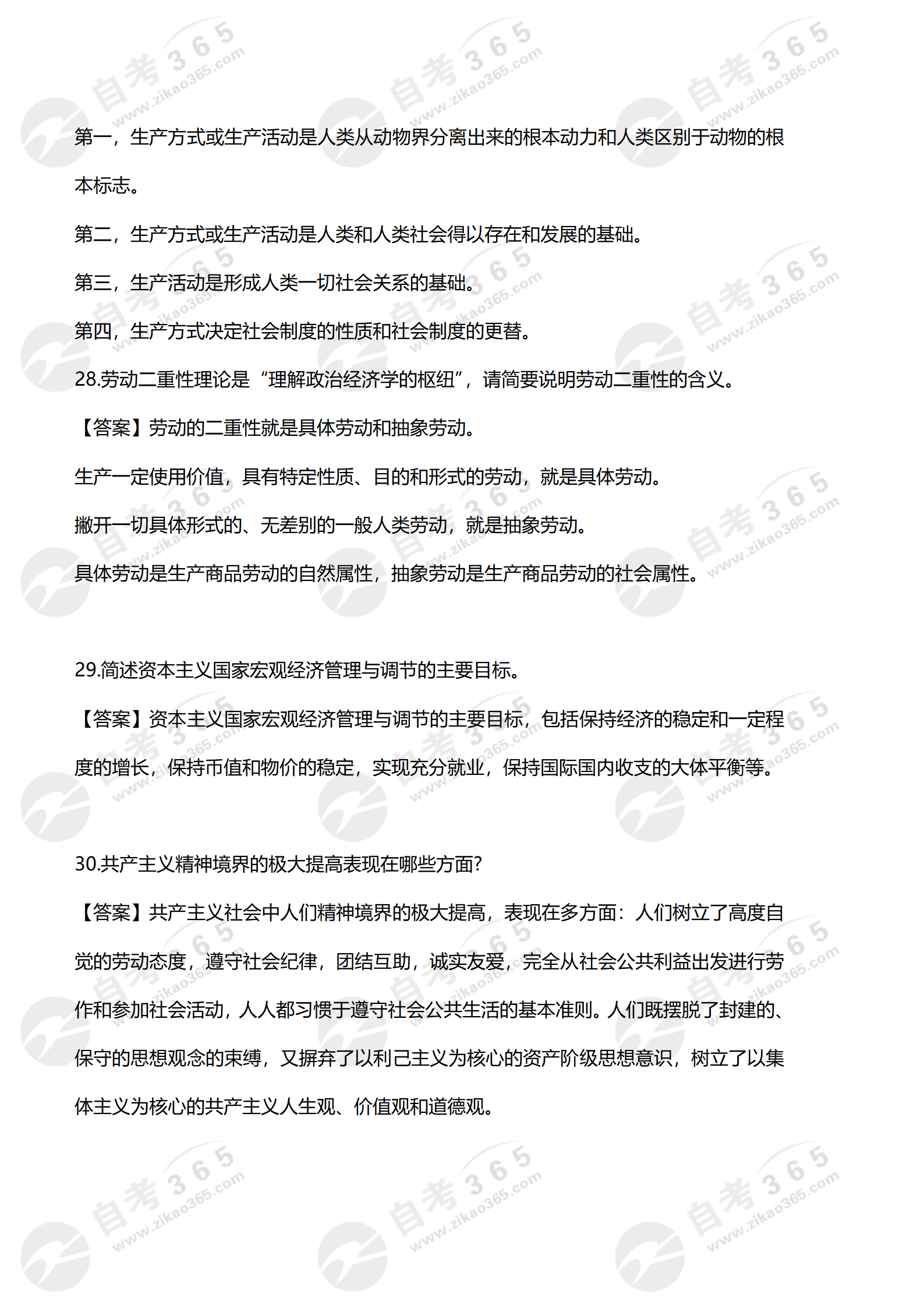 2024年4月自考馬克思主義基本原理概論部分試題及答案(考友回憶版)