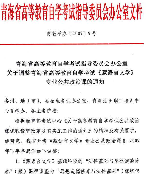 青海09下半年調(diào)整藏語(yǔ)言文學(xué)課程通知