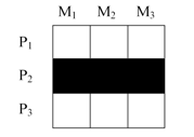 17、圖中M表示市場(chǎng),M1、M2、M3分別表示不同的細(xì)分市場(chǎng);P表示產(chǎn)品,P1、P2、P3分別表示不同類(lèi)型的產(chǎn)品;黑色方格表示企業(yè)的目標(biāo)市場(chǎng)選擇。請(qǐng)根據(jù)示意圖判斷屬于哪一種目標(biāo)市場(chǎng)選式?( )