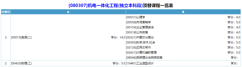備注:00015英語(二)從英語頂替課組中任選開考的三門課程。