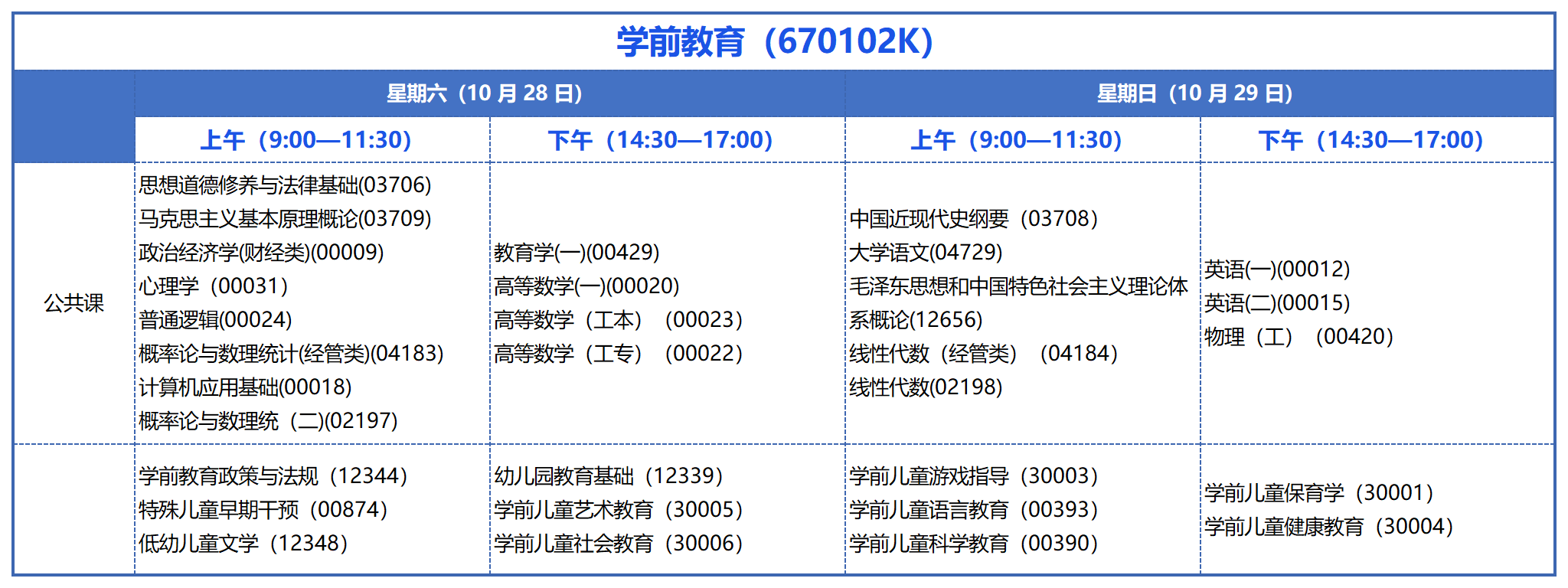 另外還有3科必考筆試課程未在10月考期安排考試,但今年4月考期有安排考試:學前兒童發(fā)展(12340)、幼兒園教育活動設計與組織(30002)、教師職業(yè)道德與專業(yè)發(fā)展(09277)