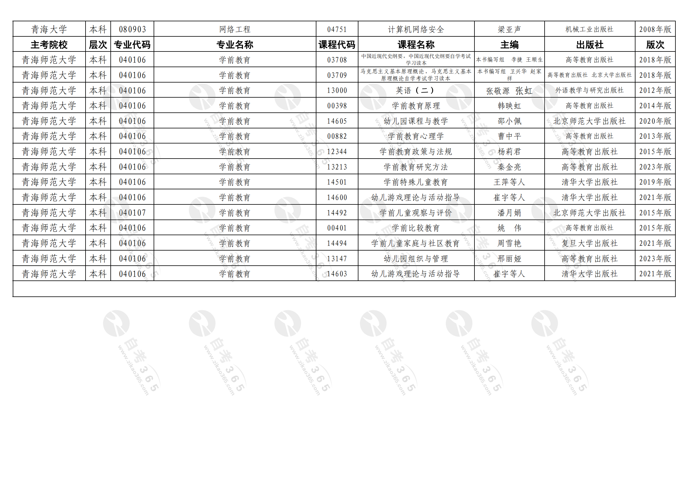 2024年上半年青海省高等教育自學(xué)考試課程使用教材目錄