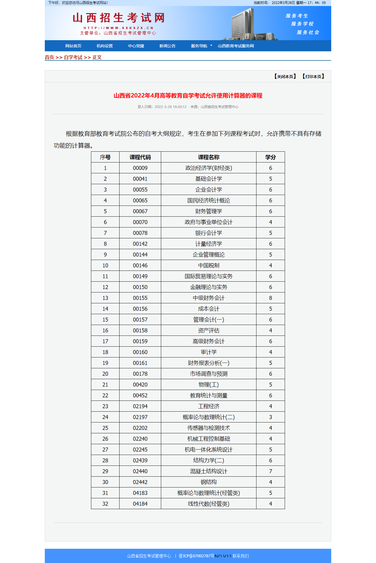 2022年4月山西自考允許使用計(jì)算器的課程
