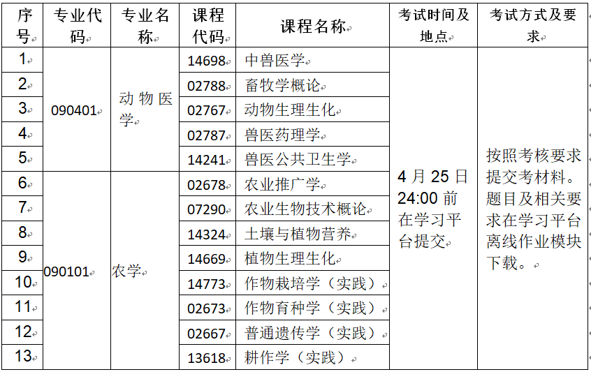 考試課程以“離線考試”形式進行考核。考生登錄學習考試平臺,按照要求和格式完成考核,并按時提交。課程名后帶實踐的課程以實踐報告形式上報完成;純實踐的課程以作業加考核的形式在線完成。