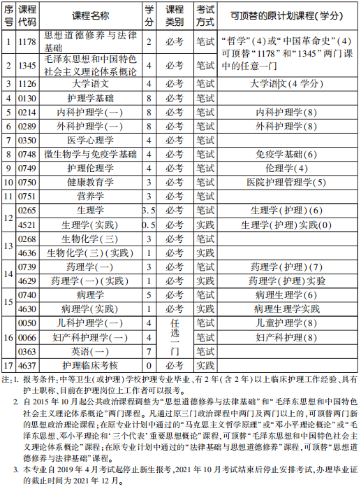 2022年4月天津自考專科護理學專業計劃(停考過渡)