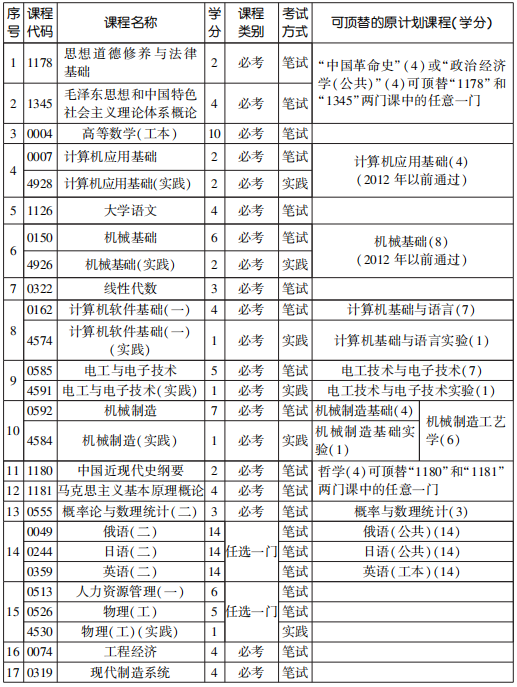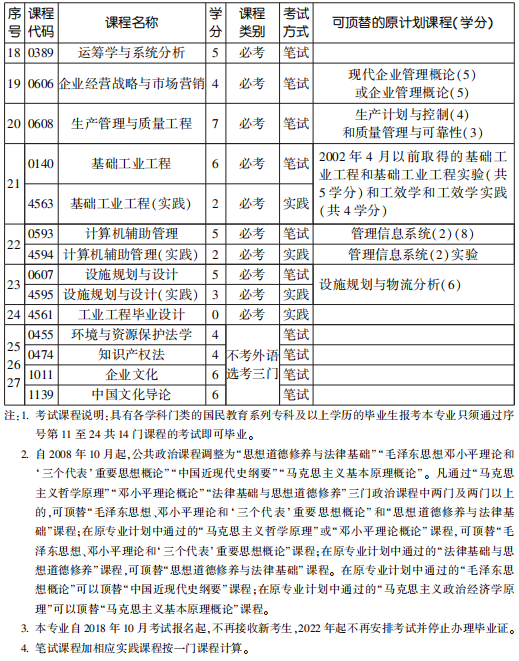 2022年4月天津自考本科工業工程專業計劃(停考過渡)