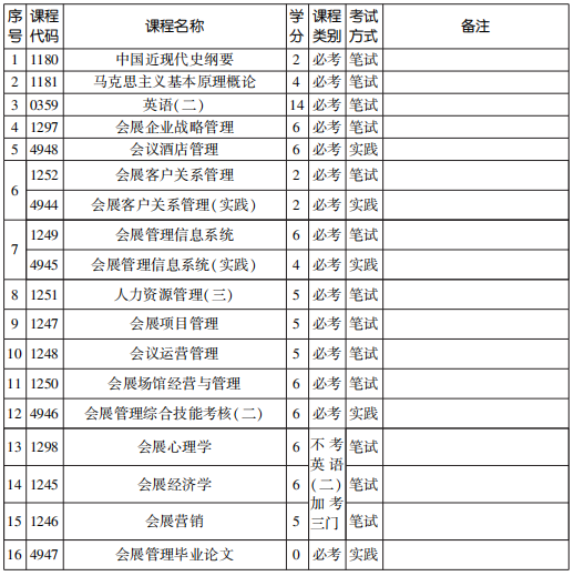 會展管理專業要求考生具有良好政治思想和道德修養,掌握會展概論、會展策劃、會展營銷、會展管理等專業知識,掌握英語,具有較好地語言溝通能力和審美意識及人文素養。